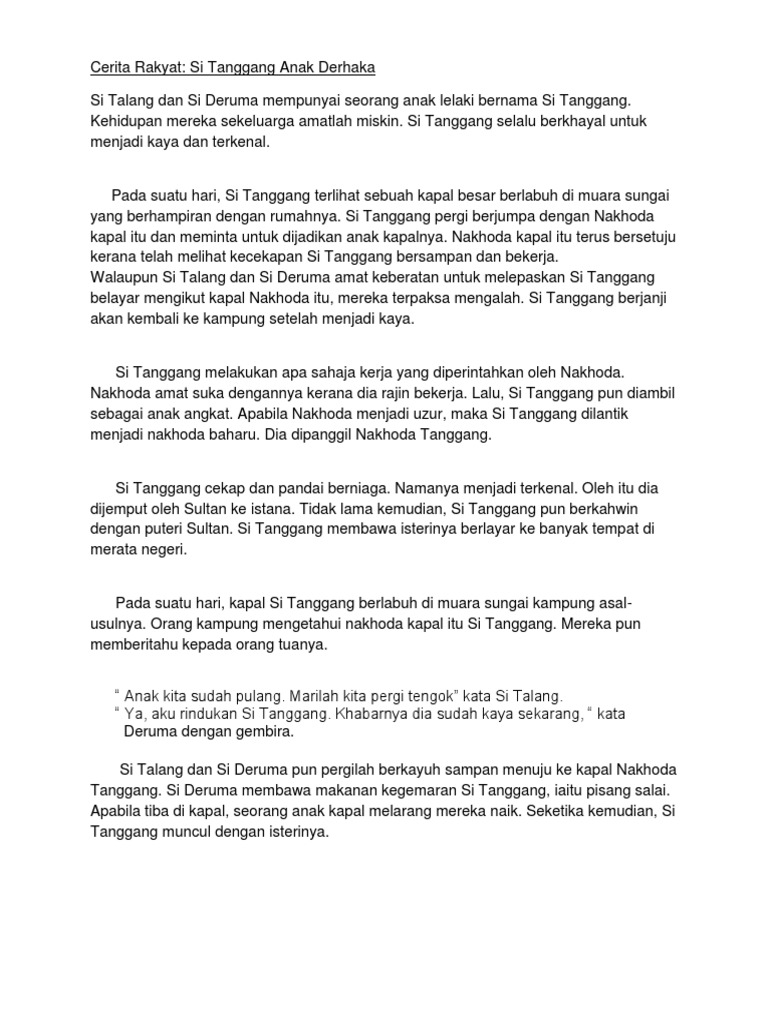 Cerita si tanggang anak derhaka. We did not find results for: Maybe you would like to learn more about one of these? Check spelling or type a new query.