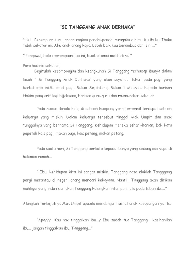 Cerita Si Tanggang Anak Derhaka - We did not find results for:. Cerita si tanggang anak derhaka. Maybe you would like to learn more about one of these? Check spelling or type a new query. We did not find results for: